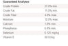 Crude Protein (Min)...30%, Crude Fat (Min)...11%, Crude Fiber (Max)…4%, Moisture (Max)...12%, Calcium (Min)...1%, Phosphorus (Min)...0.8%, Selenuim (Min)…0.3 mg/kg, Vitamin E (Min)…50 IU/kg.